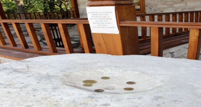 UNESCO Dünya Mirası geçici listesinde yer alan Muğladaki Stratonikeia antik kentinde bulunan Osmanlı dönemine ait Şaban Ağa Camii önündeki ‘Sadaka Taşı antik kent içindeki hayvanlara umut oldu. Sadaka taşında biriken paralar ile antik kentteki kedi, köpek ve diğer hayvanlara mama alınıyor.