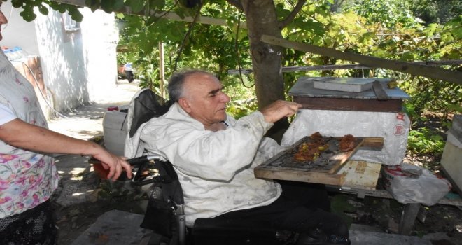 Sami Cihan, 1986 yılında bir trafik kazası geçirdim. Felç olarak yürüyemez halde kaldım. Bir ara hayata küstüm. Almanyadan otomatik bir araç aldım. 4 çocuğum var. Bunları yetiştirmek için hayata tekrar sarıldım. Allahıma şükür bunları da yetiştirdim. Bu ara kendimi adapte edebilmek için arıcılığa başladım. Balıfakı köyü, Çukur Mahallesinde bol miktarda kestane ağacımız var. Bunlardan arılar bal yapıyor. Bunları çocuklarıma, eşe, dosta ikram etmek için arıcılık yapıyorum. Hayata küsmedim. Yaşamak çok güzel bir şey. Yaşıyorum. Yaşayacağız. Cenab-ı Allahın izin verdiği süreye kadar yaşayacağız. Arıcılık esas benim mesleğim, hobim. 1971 yılından beri yapıyorum ama kaza geçirdikten sonra ‘bu işi yapamaz dediler. Yapıyorum. Ona göre tezgahımı kurdum. Kendi akülü tekerlekli sandalyemle gidiyorum, arıları açıyorum. Arıcılık hakkında engel tanımam. Kendi evimin bahçesinde yapıyorum. Sinopta oturuyorum ama bazen her gün bazen 2 günde bir gelip devamlı arılarımı kontrol ediyorum dedi.