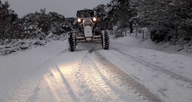 İzmir Büyükşehir Belediyesi Fen İşleri Dairesi Başkanlığı ile İtfaiye Dairesi Başkanlığı'na bağlı ekipler, kar yağışı nedeniyle sahadaki çalışmalarını aralıksız sürdürüyor. Özellikle yüksek kesimlerdeki yerleşim yerlerinde yoğun kar yağışının günlük hayatı olumsuz şekilde etkilememesi için seferber olan ekipler, hafta sonu aralıksız çalıştı. Fen İşleri Dairesi Başkanlığı ekipleri Karaburun'da 1, Karabağlar'da 3, Seferihisar'da 2, Menderes'te 2, Menemen'de 8, Kemalpaşa'da 7, Buca'da 3, Bornova'da 6, Kınık'ta 15, Bergama'da 31 köy olmak üzere toplamda 78 köy ve mahalle yolunda kar küreme ile tuzlama çalışması yaptı. 243 personel ile üç vardiya şeklinde yürütülen çalışmalarda 16 greyder, 10 kar küreme ve tuz serim aracı, 42 kamyon, 5 loder, 14 traktör kepçe kullanıldı.