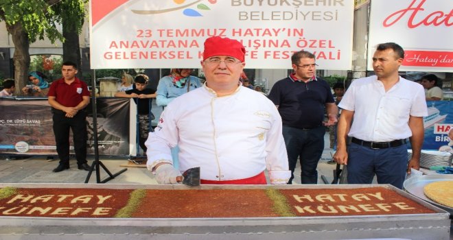 Hatayın ana vatana katılışının 79. yıl dönümü etkinlerinden olan künefe şöleni Antakyanın Atatürk Caddesinde gerçekleşti. Hatay Büyükşehir Belediyesi Başkanı Lütfü Savaş, Hatay Vali Yardımcısı Mahmut Hersanlıoğlu ve CHP Hatay Milletvekili Mehmet Güzelmansurun katıldığı etkinlikte, 79 metrelik künefe vatandaşlara ikram edildi.