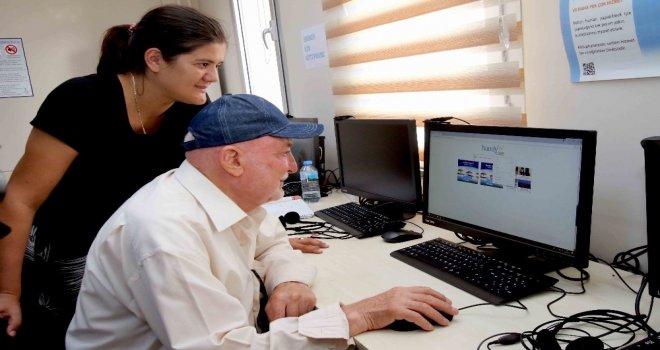 Almanyada 26 yıl yaşadıktan sonra emekli olan ve memleketi Sivastan geçtiğimiz aylarda İzmire taşınan 80 yaşındaki Mahmut Bekar, Bayraklı Belediyesi kütüphaneleri aracılığıyla bilgisayar kullanmayı öğreniyor. Örnek davranışı ve azmiyle herkesi kendisine hayran bırakan Bekar, Bu zamana kadar fırsatım veya imkanım olmadı dedi.