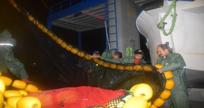 Kaptan Kocabıyık, rotayı balık geçişlerinin yoğun olduğu Bandırma Körfezi açıklarına doğru çevirdi. Denizde 7-8 saat süren arayış sonunda Molla Adası açıklarında cihazında bir balık sürüsü gören Yücel Kaptanın mürettebatı uyaran alarmı çalmasıyla birlikte ağı denizde sabitlemekle tekneyi denize indirdi.