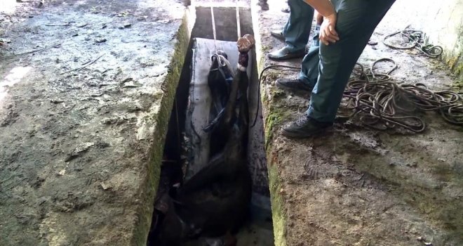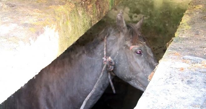 Abhazyanın başkenti Sohumda eski bir araç tamirhanesindeki çukura düşen at uzun süren uğraşlar sonucu kurtarıldı.