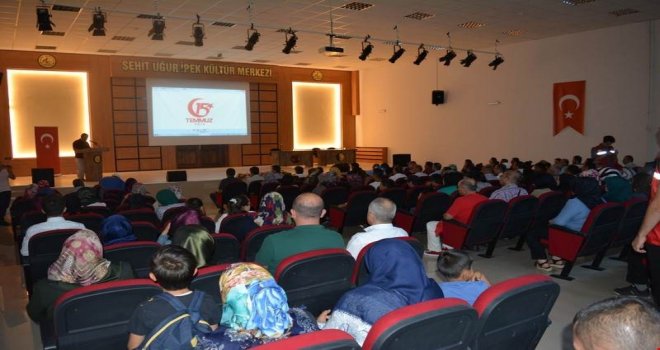 Nevşehir Hacı Bektaş Veli Üniversitesine görevli Doç.Dr. Ahmet Oğuz, Öğretim Üyesi Dr. Tekin Tuncer ve Öğretim Üyesi Dr. Hüseyin Kalemli, gençliğin demokrasi inancının yaşatılmasını pekiştirecek 15 Temmuz ile ilgili konferans verdiler. Daha sonra İlçe Müftümüz Tahsin Mutlu tarafından şehitlerimizin ruhu için dua edildi.