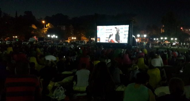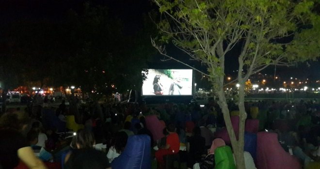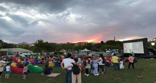 Tekirdağ düzenlenen ‘Açık Hava Sinema Günlerinde vatandaşlar açık havada kurulan dev ekrandan sinema izlemenin keyfini yaşıyor.