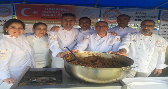 Akdeniz Aşçılar Federasyonu Başkanı Münir Tanak ve ADAPADER Başkanı Derviş Göçmenin koordinesinde çalışma yürüten Adanalı aşçılar, Fetullahçı Terör Örgütünün (FETÖ) hain darbe girişimine karşı canlarını feda eden şehitlerin anısına dev kazanlarda irmik helvası pişirdi. Demokrasi nöbetinde seferber olan ADAPADER üyeleri, cevizle lezzetlendirdikleri irmik helvasını kent protokolü ve meydanı dolduran onbinlerce vatandaşlara ikram etti.