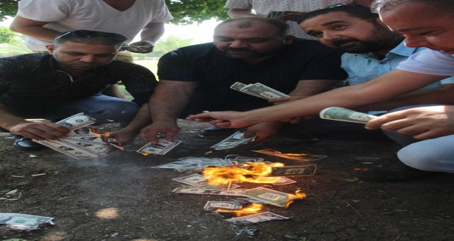 Cumhurbaşkanı Recep Tayyip Erdoğanın Amerikanın elektronik ürünlerini boykot edeceğiz açıklamasından sonra Adanada bir grup vatandaş, artık Çin ve Türk malı cep telefonları kullanacaklarını söyleyip, temsili dolar yaktılar.