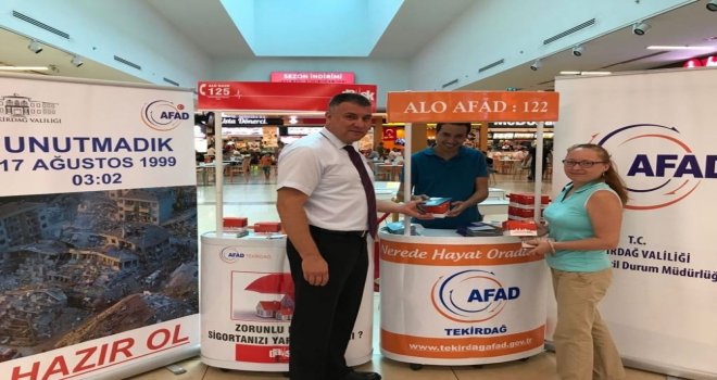 17 Ağustos 1999da meydana gelen Marmara Depremi anma etkinlikleri kapsamında, AFAD tarafından bir alışveriş merkezinde Hazır ol temalı AFAD Standı kurularak vatandaşlara kumbara, depremle ilgili broşür ve kitapçıklar dağıtıldı.
