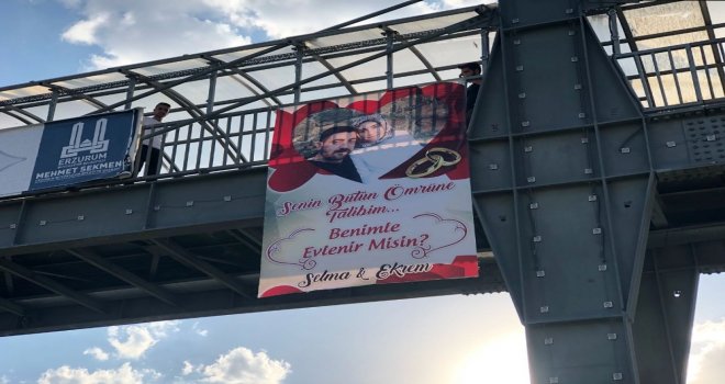 Erzurumda yaşan 32 yaşındaki Ekrem Uçar, 24 yaşındaki Batmanlı kız arkadaşı Selma Tufana sürpriz bir evlilik teklifi yaptı. Özel bir şirkette çalışan Ekrem Uçar, Çevre Mühendisi olan kız arkadaşı Selma Tufana evlilik teklifi yapmak için üzerinde “Benimle evlenir misin?” yazılı afiş bastırdı.