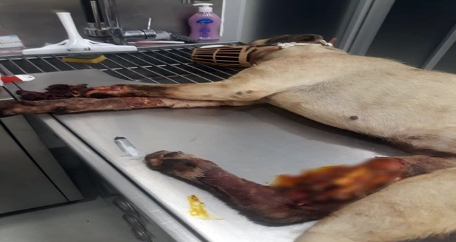 Başkan Yılmaz, hayvanın tren garı yakınlarında bulunmasının akla tren kazasını getirdiğini ancak bacakların çapraz kesikler olması ve sinirlerin kopmamış olmasının kendilerini düşündürdüğünü söyledi. Ayrıca tedaviye alınan kangal cinsi köpeğin erkek veterineri görünce saldırgan hale geçmesi kadın veterinere ise kendini sevdirmesi yine düşündürücü bir davranış olduğunu açıkladı. Bacaklarındaki tendon sinirler ile ön ile arka bacak durduğunu ancak kuyruğun tamamen sıyrılmış olduğunu kaydeden Yılmaz, hayvanın ateşinin ise 40.8 olarak ölçüldüğünü söylerken, İstanbulda acil müdahale ile bu durum şimdilik düzeltildi.Ne yazık ki arka bir bacağı ve kuyruğu tamamen kaybedecek. Ön kolda da kayıp var bunun için ise protez yaptıracağız şeklinde konuştu.
