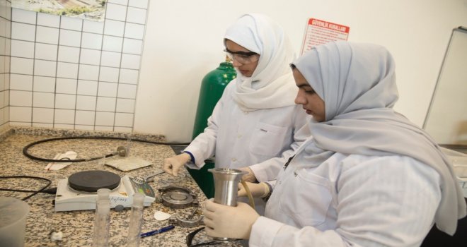 Öğrenciler araştırmalarını İnşaat Mühendisliği ve Malzeme Mühendisliği Bölümlerinin laboratuvarlarında gerçekleştiriyor.