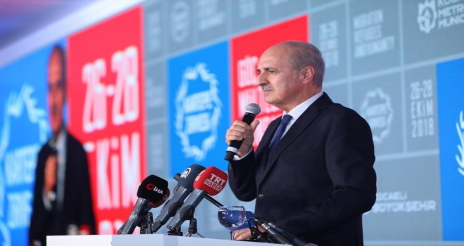 Daha sonra Konuşan Numan Kurtulmuş, Göç ve mültecilik sorunlarının çözümü için yapılan çözüm yöntemlerindeki anlayışın değişmesi gerektiğini belirterek, “Göçmen meselesini konuşuyoruz, istatistikleri konuşuyoruz, şuradan şu kadar buradan bu kadar gelsin diyoruz. Çözümleri de konuşmaya çok şükür başlıyoruz ama çözelim dendiği zaman dünyanın buna takati yok tam da sorun buradadır. Takati olmamış, olmayan çivisi çıkmış bir dünya sisteminden bahsediyoruz. Büyüsü bozulmuş bir dünya sisteminden bahsediyoruz. Aslında sadece göçmen meselesini değil, dünyanın hiçbir bölgesel ya da küresel sorununu çözemeyen bir dünya sisteminden bahsediyoruz. Göçün bu kadar ağır tehdit haline gelmiş olmasının önemli sebeplerinden birisi de insanlık aleminin takatinin kalmamış olmasıdır. Filistinde daha dün göz göre göre 5 kişiyi şehit ettiler. Her gün onlarca insan hayatını kaybediyor, her gün bir çok aile Filistini terk etmek zorunda kalıyor. Evlerine arazilerine el konuluyor dünya seyrediyor. Konu yüzlerce kez Birleşmiş Milletlere konu geliyor ama Birleşmiş Milletler Güvenlik Konseyinde Amerika Birleşik Devletleri, İsrailin yaptığı bütün zulümlere karşı alınacak kararları veto ediyor. Suriyeden bahsediyoruz, orada kimyasal silahlar kullanılıyor diyoruz, Birleşmiş Milletler Güvenlik Konseyine konu geldiği zaman orada da bu sefer Suriyenin dayısı veto ediyor, Suriyenin yaptığı zulüm yanına kalıyor” dedi.