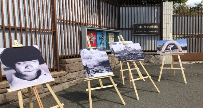 ABDnin Hiroşimadaki katliamının 73. yıl dönümünde Japonyanın Ankara Büyükelçiliği önünde toplanan AK Partililer, katliamı gösteren 8 fotoğrafı, büyükelçilik önünde sergiledi. Sık sık katil ABD hesap verecek ve zalim ABD sloganları atan grup adına basın açıklaması yapan AK Parti Ankara İl Gençlik Kolları Başkanı Ali Osman Özdemir, tarihin en kanlı katliamlarından birinin yıl dönümünde bir araya geldiklerini söyledi. 2. Dünya Savaşının son aşamasına gelinmesiyle birlikte 6 Ağustos 1945de saat 18.15de ABDnin atom bombası kullanarak nükleer bir saldırı gerçekleştirdiğini anımsatan Özdemir, İlk olarak Hiroşimaya ve sadece 3 gün sonra da Nagazakiye atılan atom bombaları sonucu 250 bin civarı insan ölmüş, bölgede neredeyse hiçbir canlı türü kalmamıştır. Sonuç ABDnin isteği yönünde olmuş tüm dünya için bu felaket soğuk duş etkisi oluşturmuş ve her şeyi durdurmuştur. Dünya tarihinin gördüğü en acımasız katliam olan Hiroşima ile birlikte yüz binlerce insanın tüm mal varlıkları ellerinden alınmıştır. Bugün insan hakları, demokrasi, eşitlik gibi kavramlar hakkında dünyanın geri kalanına vaazlar veren ABDnin tarihteki en akıl almaz katliamı gerçekleştirmesi onun bu faşizan tavrını gözler önüne sermiştir diye konuştu.