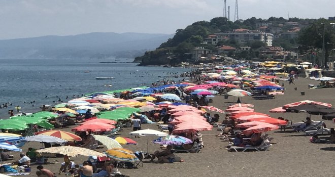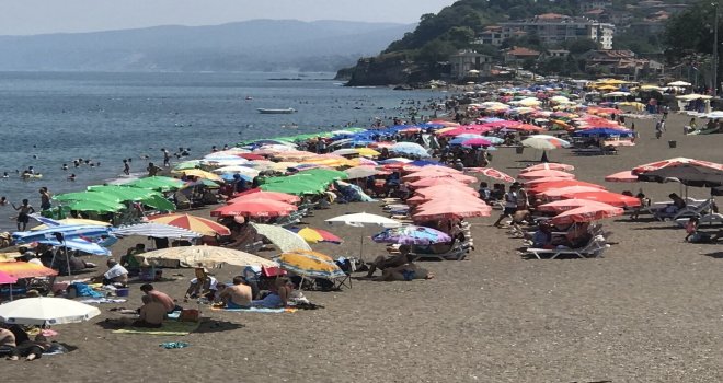 Karadenizde aşırı sıcakların bastırması ve gölgede 34 derece sıcaklığın görülmesiyle birlikte Akçakoca sahilleri tıklım tıklım doldu. Plajlara akın eden yerli ve yabancı turistler, Karadenizin serin sularında serinlerken görüntülendi.