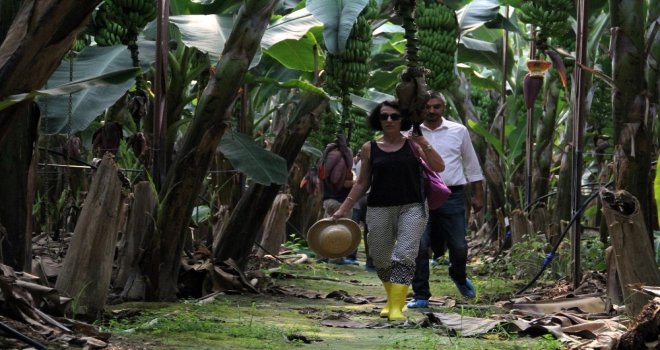 Antalyanın Alanya ilçesinde açıkta ve ört altında üretimi yapılan muzun üretim bahçeleri farklı ülkelerden 15 bilim insanı tarafından incelendi.