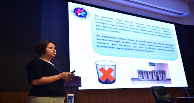 Ankara Büyükşehir Belediyesi Kent Estetiği Dairesi Başkanlığı Atık Koordinasyon Şube Müdürlüğü, tarafından “Sıfır Atık” projesi çerçevesinde belediye personeline hem projenin detayları tanıtıldı hem de ilk eğitim verildi. Büyükşehir Belediyesi Konferans Salonunda gerçekleştirilen proje tanıtım toplantısında, personelin çalıştığı ortamda kendi “çöp”ünü nasıl ayrıştıracağı slayt ve videolarla anlatıldı. Toplantıda ayrışan çöplerin ne şekilde dönüştürüleceği hakkında bilgi verilirken, hem doğanın kazanacağı hem de çevre bilinci aşılanacağına vurgu yapıldı. Kent Estetiği Dairesi Başkanlığı Atık Koordinasyon Şube Müdürlüğü yetkilileri, 6 Ağustos tarihinden itibaren belediyenin tüm birimlerinde masa altı çöplerinin kaldırılacağını kaydettiler. Atık Koordinasyon Şube Müdürü Duygu Soytürk, Sıfır atık projesi hem ülkemize hem doğamıza kazandıracak. 1 ton atık kâğıdın geri dönüşümü 17 ağacın kesilmesini engelliyor. 17 ağaç diyip geçemeyiniz 17 kişi için oksijen üretiyor, 17 ağacımızı kurtarmış oluyoruz ifadelerinde bulundu.