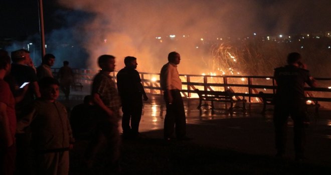 Olay, Ankaranın Gölbaşı ilçesinde meydana geldi. Edinilen bilgiye göre, dün gece geç saatlerde henüz belirlenemeyen bir sebepten dolayı, Mogan Gölü kenarında bulunan sazlık alanda yangın çıktı. Rüzgarın da şiddetiyle alevler hızla büyüdü. Yangını gören vatandaşlar hemen o alana koşarak kendi imkanlarıyla söndürmeye çalıştı. Yangın bir türlü kontrol altına alınamayınca durum ilgili yerlere bildirildi. Kısa sürede olay yerine çok sayıda itfaiye ve polise ekibi sevk edildi. İtfaiye ekipleri, hummalı bir çalışma sonucu yangını bir saat sonra kontrol altına aldı. İtfaiye erleri soğutma çalışmalarına başlarken, polis ekipleri de bölgede çevre güvenliği sağladı.