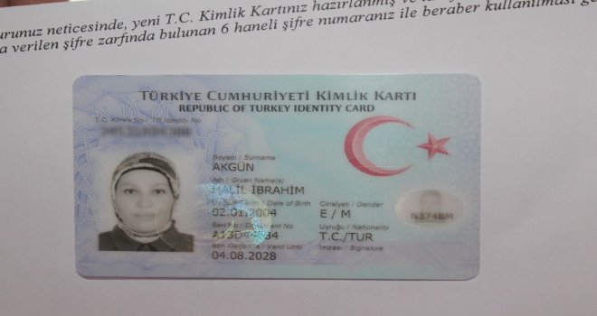 Kocaelinin Gebze ilçesinde yaşayan Kezban Akgün, 14 yaşındaki oğlu Halil İbrahim Akgün ile 7 Ağustos tarihinde çipli kimlik kartı almak üzere Nüfus Müdürlüğüne başvuruda bulundu. Gebze İlçe Nüfus Müdürlüğüne giderek hem kendisi hem de oğlu için çipli kimlik kartı başvurusunda bulunan anne Akgün, 2 gün sonra kendisine teslim edilen kimlik kartını görünce şoka uğradı. Kargodan gelen kimlik kartını teslim alan anne Kezban Akgün, oğlu için düzenlenen kimlik kartına kendi fotoğrafının basıldığını gördü. Neye uğradığını şaşıran anne ve oğlu, gerekli düzeltmenin yapılması için Nüfus Müdürlüğüne başvuru yaptılar. Kimliğine annesinin fotoğrafı basılan Halil İbrahim Akgün, 17 Ağustosta gireceği çıraklık sınavına alınamama korkusu yaşadığını dile getirdi.