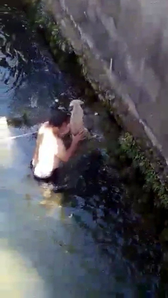 Antalyada dereye düşen yavru köpek suya giren bir genç tarafından kurtarıldı. Hayvana şiddet olaylarının yoğun olduğu bugünlerde gencin örnek davranışı takdir topladı.