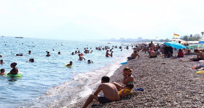 Antalyada Sahillerde Bayram Yoğunluğu