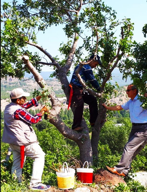 mahallelerinde yapılırken, çalışmaları görmek için İl Tarım ve Orman Müdürü Erkan Alkan ilçeyi ziyaret etti. Ardından bir açıklama yapan Alkan, İlçemiz ekonomisine katkı sağlamak ve Antep fıstığı yetiştiriciliğinin özendirilmesi maksadıyla yapılan proje ile Mihalgazi ilçemizde farkındalık oluşturmayı amaçlıyoruz. Aşılama işlemleri Bozaniç, Karaoğlan ve Demirciler mahallelerinde yapılmıştır. Projenin geliştirilerek bölgeye daha yararlı olması için çalışmalarımız devam etmektedir. Çiftçilerimiz ve yöre halkımız için hayırlı olmasını diliyoruz” dedi.
