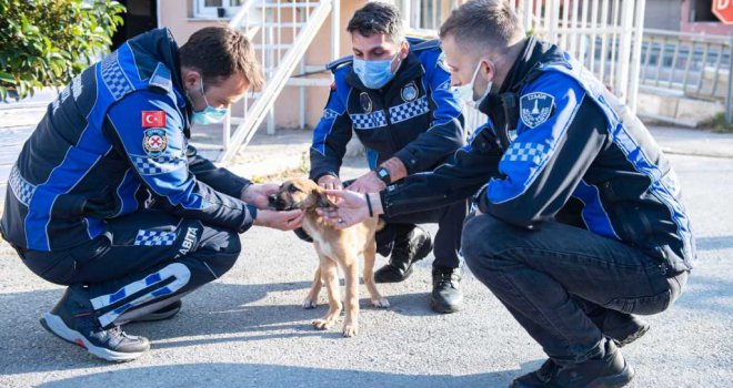 İzmir Büyükşehir Belediyesi Zabıta Dairesi Başkanlığı Trafik Şube Müdürlüğü ekipleri, geçen hafta bir taksinin çarptığı yavru köpeği sahiplendi.