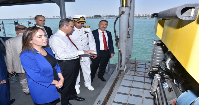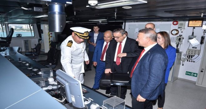 Cumhuriyet Alanındaki törenlerin ardından Mersin Limanında demirli bulunan gemiyi, Mersin Valisi Ali İhsan Su, Büyükşehir Belediye Başkanı Burhanettin Kocamaz, milletvekilleri Olcay Kılavuz, Baki Şimşek, Zeynep Gül Yılmaz ve Hacı Özkan da ziyaret etti. Protokol üyeleri, kaptan köşkü olarak bilinen köprü üstünü gezdi.