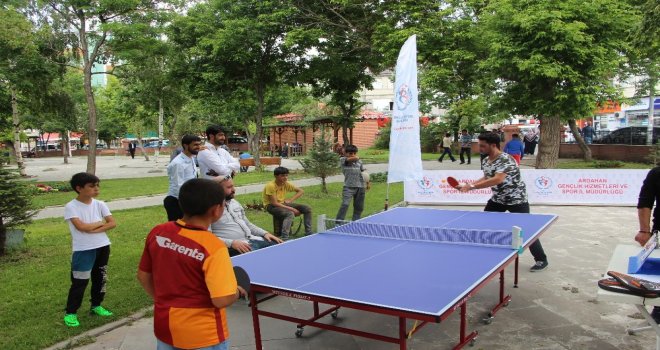Ardahan Gençlik Hizmetleri Spor İl Müdürlüğü 15 Temmuz Demokrasi Zaferi ve Şehitleri anma haftasında Ardahan Milli egemenlik parkında gün boyu masa tenisi turnuvası yapıldı.