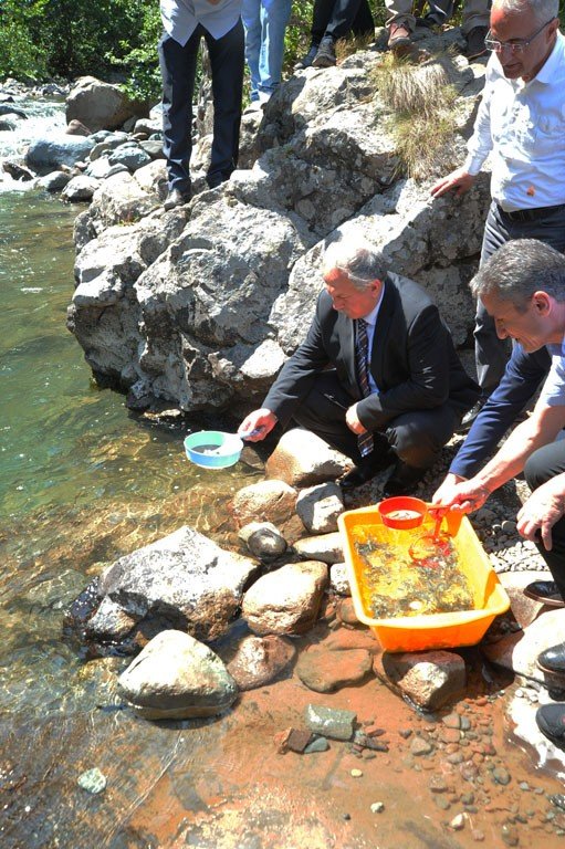 Konuşmaların ardından Vali Doğanay ve beraberindekiler Papart Deresine 20 bin adet yavru kırmızı benekli alabalığı bıraktı.