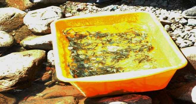 Artvinin Şavşat ilçesinde, yaklaşık 20 bin kırmızı benekli doğal alabalık yavrusu Papart Deresine bırakıldı.