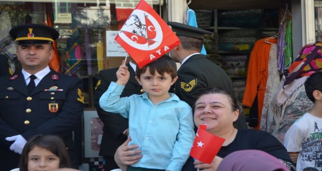 Vali Doğanay, Garnizon Komutanı Çerçi ve Belediye Başkan Mehmet Kocatepe askeri araç üzerinde vatandaşların bayramını kutlamasıyla devam eden törende günün anlam ve önemini belirten konuşmayı Jandarma Yüzbaşı Özgür Barış İçöz okudu.