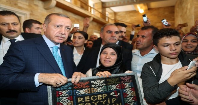 Günyüzüde yaşayan Yılmaztürk, kilimi Cumhurbaşkanı Erdoğana kendi elleriyle hediye etmek istediğini söylemişti. Dün Ankaradaki grup toplantısına giden Günyüzülü Arzu Yılmaztürk, Cumhurbaşkanı Erdoğana dokuduğu Zili kilimini elleriyle hediye etti. Grup toplantısında Cumhurbaşkanının konuşmasının bitmesinin ardından güvenlik şeritlerini ve korumaları aşarak sesini duyuran Yılmaztürk, Cumhurbaşkanının yanına gelmesiyle heyecandan gözyaşlarını tutamadı. Cumhurbaşkanının teselli etmesine rağmen sevinç gözyaşları döken Yılmaztürk, dokuyup çerçevelediği Zili kilimini hediye etti.