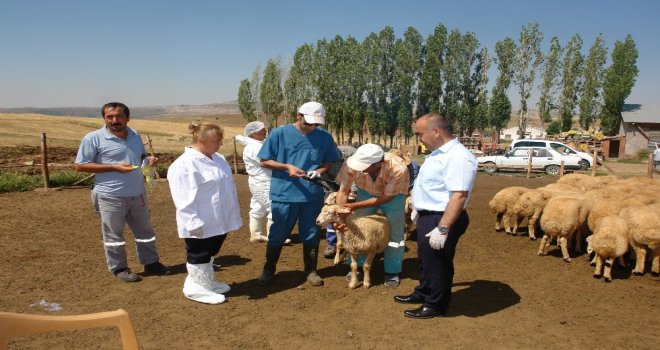 Sivas İl Gıda, Tarım ve Hayvancılık Müdürlüğü ekipleri küçükbaş hayvanlarda küpeleme ve aşılama çalışmalarını sürdürüyor.