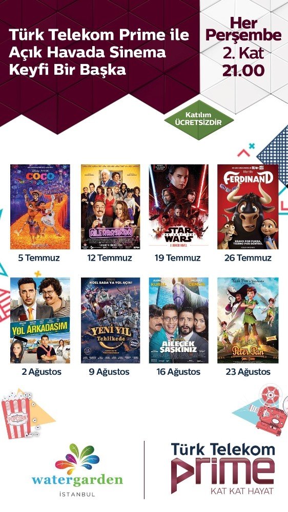 Ataşehirdeki Watergarden İstanbulun teras katında, yıldızlar altında gerçekleşen Açıkhava Sinemasında bu hafta yönetmenliğini Carlos Saldanhanın üstlendiği; orijinal fikrinin ise Munro Leaf imzalı çocuk kitabına dayandığı Ferdinand izleyiciler ile buluşacak. Arenada dövüşmektense tarlalarda çiçek koklamayı tercih eden bir boğanın hikayesinin anlatıldığı Ferdinand, Watergarden İstanbulda vatandaşlar ile ücretsiz buluşacak.