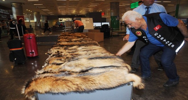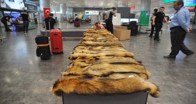 Atatürk Havalimanında yurda kaçak yollarla sokulmaya çalışılan 40 tane tilki kürkü, Gümrük Muhafaza Müdürlüğü ekiplerinin dikkatli çalışması sonucu yakalandı.