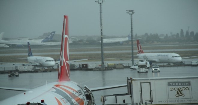 İstanbulda etkili olan şiddetli yağış, Atatürk Havalimanındaki uçuşları olumsuz yönde etkiledi. Yağışın etkisiyle iniş ve kalkışlarda gecikmeler yaşanırken, bazı uçaklar pisti pas geçti.