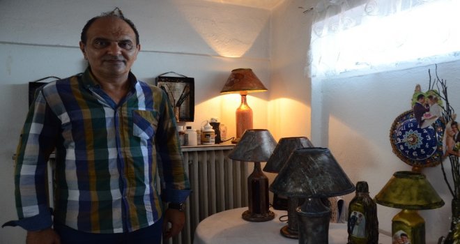 Atık Şişelerden Ürettiği Abajurlar, Ek Gelir Kapısı Oldu