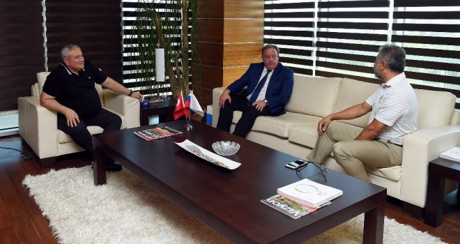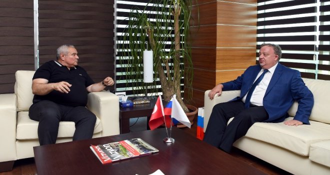 Rusya Federasyonu Antalya Başkonsolosu Oleg Rogoza, Antalya Ticaret ve Sanayi Odasını (ATSO) ziyaret etti. ATSO Yönetim Kurulu Başkanı Davut Çetinin ev sahipliği yaptığı ziyarette, ATSO Başkan Yardımcısı Mustafa Atılgan ve Yönetim Kurulu Üyesi Cahit Şahin de bulundular. Ziyarette konuşan ATSO Başkanı Çetin, Mevcut trend devam ederse bu yıl en çok Rus vatandaşını ağırladığımız yıl olacak” dedi. dedi.