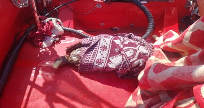 Operasyonu başarıyla tamamlayan ekipler kartalı kıyıya çıkardı. Ekipler daha sonra kartalı sarılı olduğu battaniyeden serbest bıraktı. Saatler süren zorlu mücadelesinin ardından karaya ayak basan kartalsa ilkin silkelenip tüylerindeki fazla sudan kurtuldu, sonra kanatlarını gerdi. Kısa bir sürenin ardından biraz olsun kuruduğuna, artık uçabileceğine kanaat getiren zavallı kartal özgürlüğe kanat çırptı.