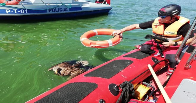 Polonyanın kuzeyinde Baltık Denizi kıyısında yer alan Vistül Lagünü alışılmadık bir kurtarma operasyonuna sahne oldu. Bölgede devriye görevi yapan su polisi lagünün karadan oldukça uzak kısmında bir kartala rast geldi. Kısa süreli bir gözlemin ardından kartalın tüyleri ıslandığı için havalanamadığını fark eden su polisi vakit kaybetmeden Braniewo İtfaiyesine haber verdi. Hızlıca olay yerine ulaşan itfaiye ekipleri polisle birlikte kartalı kurtarmak için düğmeye bastı. Kartalın balık avlamak için suya daldığını düşünen ekipler, hayvanın tüylerinin tamamının sırılsıklam olduğunu fark etti. Tüyleri ıslandığı için uçamayan zavallı kartalın saatlerce uçmak için mücadele verdiğine, bu uzun mücadele sonunda bitap düştüğüne kanaat getiren ekipler iki yandan kartala yaklaştı. Sonrasında kalan enerjisiyle kanatlarını artık havalanmak için değil de suda batmamak için kullanan kartalı yakalamak için suya giren bir itfaiye eri, kartalı can simidine yerleştirerek bota kadar çekti. Zavallı kartal daha sonra battaniye yardımıyla itfaiyenin botuna çıkarıldı.
