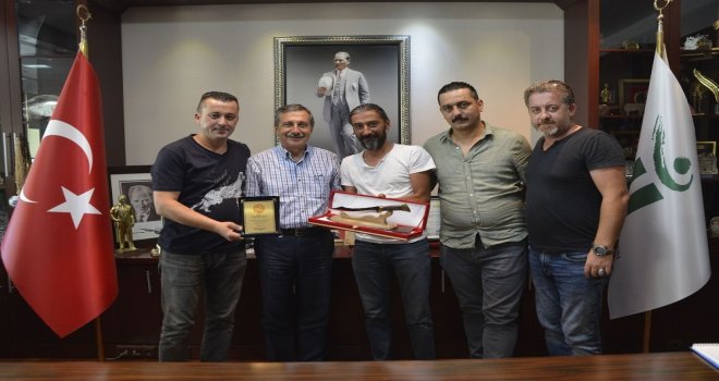 Ziyaret sonunda kulüp yetkilileri Başkan Ataça bir teşekkür plaketi ve avcı bıçağı takdim etti.