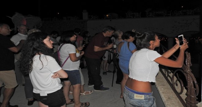 Yüzyılın ay tutulması, İzmirin Çeşme ilçesinde de binlerce kişi tarafından izlenip kaydedilirken, gökyüzündeki görsel şölen Çeşmeyi daha da güzelleştirdi.
