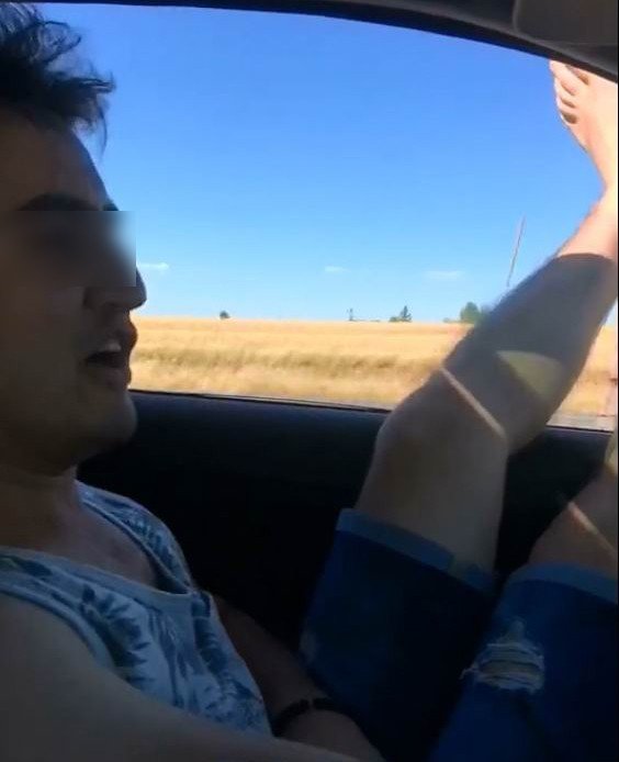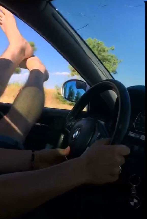 Ayaklarını camdan dışarı sarkıtarak otomobil kullanan A.K. isimli bir kişi o anları sosyal medyada paylaştı. Seyir halindeyken ayaklarını dışarı çıkaran sürücü hem kendi hem de diğer sürücülerin can güvenliğini hiçe saydı. Nerede çekildiği belli olmayan görüntülere, şahsın arkadaşları ve sosyal medya kullanıcıları tepki gösterdi.