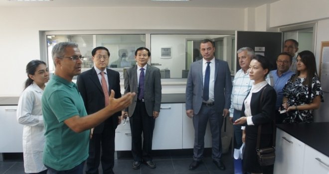 Aydın Ticaret Borsası Başkanı Fevzi Çondur Çin Halk Cumhuriyeti İzmir Başkonsolos Vekili Ni Xiaojing ve Ticaret Konsolosu Liu Weiguoya, Aydın Ticaret Borsası Özel Gıda Laboratuvarları ve borsa idari kısmını gezdirerek yapılan çalışmalar ve Laboratuvar birimleri hakkında bilgilendirmede bulundu.