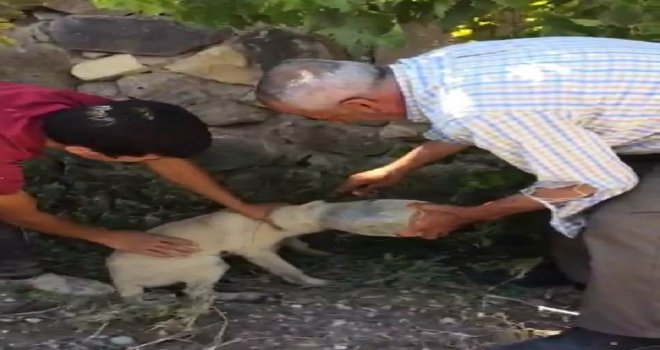 Darende ilçesine bağlı Balaban Mahallesi Gökderen mezrasında bahçede çalışan İsmail Özdemir ile çocukları, uğultu üzerine baktıkları çalılıklarda kafası pet şişeye sıkışmış bir yavru köpekle karşılaştı. Su içmek istediği sırada kafasını şişeye sıkıştırdığı tahmin edilen köpeği kurtarmak için harekete geçen İsmail Özdemir ve oğlu, uzun süre şişeyi çıkarmak için mücadele etti. Makas ve pense yardımı ile pet şişeyi kesmeye çalışan Özdemir, köpeğe zarar gelmemesi için dikkatlice çalıştı. Kurtarma çalışmasını bahçede bulunan bir vatandaş cep telefonuna saniye saniye kaydetti. Uzun uğraşlar sonucu yavru köpek yeniden özgürlüğüne kavuştu.