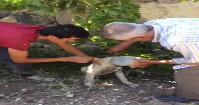 Son zamanlarda hayvanlara yapılan işkenceler hafızalardaki yerini korurken, Malatyanın Darende ilçesinde kafası pet şişeye giren yavru köpeğe yardım eden baba oğlun çabası takdir topladı.