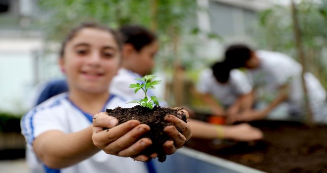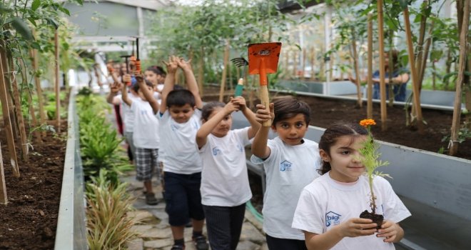 Sabah 09.00da eline çapasını, tırmığını, küreğini ve sulama aparatını alan öğrenciler eğitmenleri eşliğinde Botanik Bahçesine giriyor. Toprakla buluşan çocuklardan kimisi domates, biber, patlıcan, maydanoz, kıvırcık çeşitleri bulunan bitkilerden ekerken kimisi de çiçekleri suluyor. Kirlenmeyi düşünmeden elleriyle toprağı kazarak hoşça vakit geçirenlerin yanında kumdan kaleler yaparak oyunlar oynayanlar da göze çarpıyor.