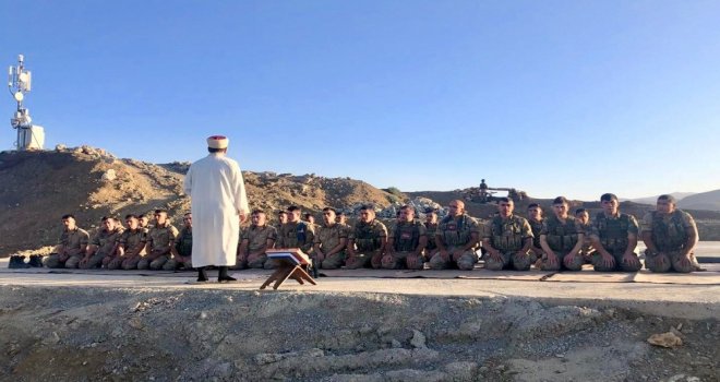 İçişleri Bakanı Süleyman Soylu, Şırnak Mezraa Jandarma Komando Tabur Komutanlığı tarafından emniyeti sağlanan, Kato Üs Bölgesini ziyaret ederek, görev başındaki Mehmetçik ile bayramlaştı.