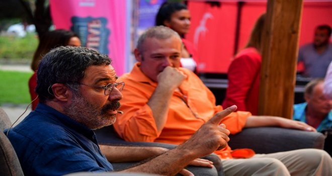 5inci Beylikdüzü Barış ve Sevgi Buluşmaları, edebiyat ve sinema dünyasının yıldızlarını İstanbullularla buluşturmaya devam ediyor. Sahaf Söyleşilerinekonuk olan Ahmet Mümtaz Taylan ve Hakan Günday “Edebiyat ve Sinema” konusundaki fikirlerini kitapseverlerle paylaştı.