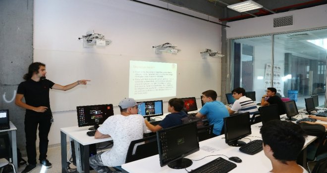 Bilişim teknolojilerine ve programlamaya ilgi duyan 14-18 yaş aralığındaki gençlerin katıldığı eğitim programında, “Geçmişten günümüze programlama dillerinin tarihi, C programlama diline giriş, kodlama, problem çözme ve Algoritmaya giriş konularında dersler veriliyor.